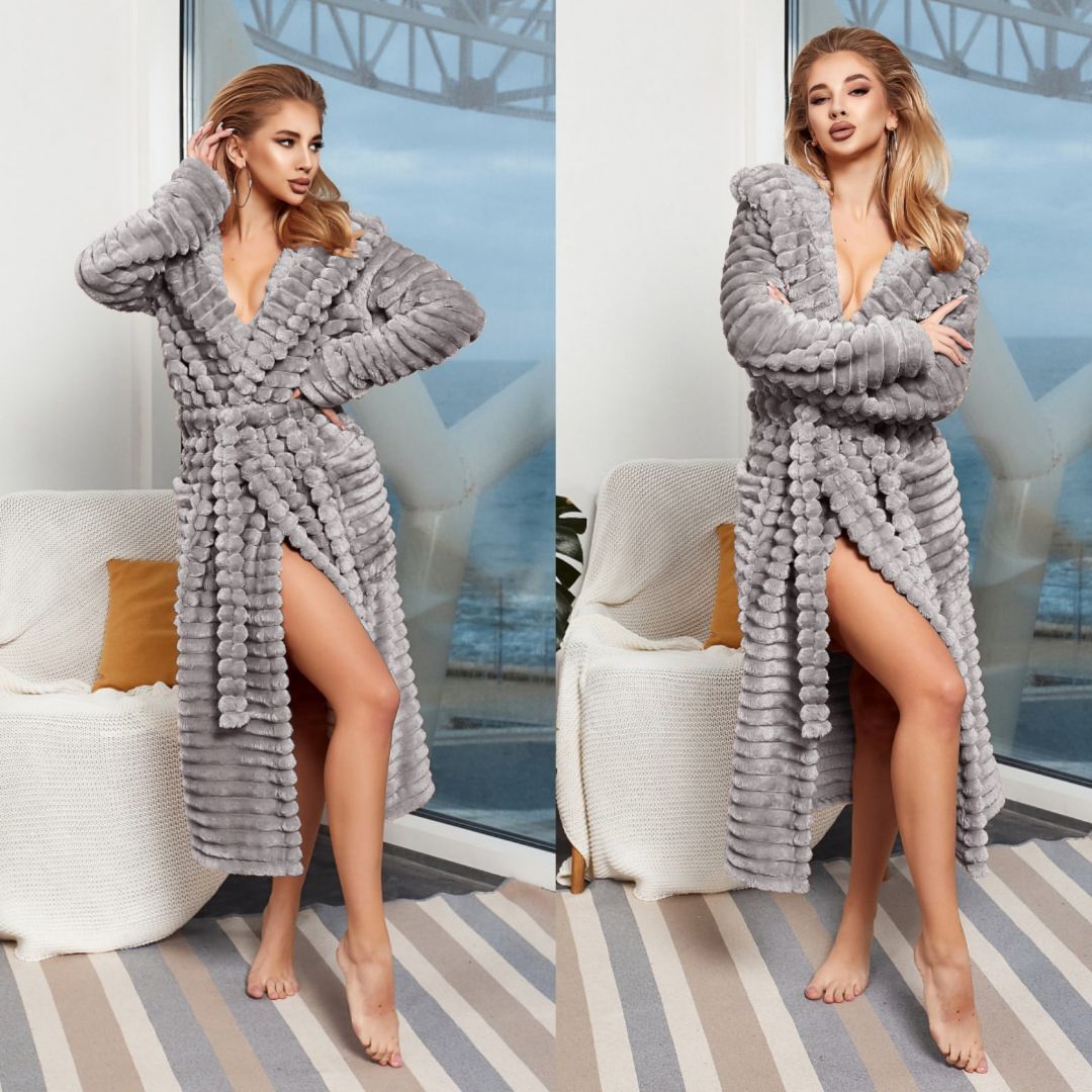 Даний виріб є незамінним дома. Адже, він комфортний, теплий та зручний у використанні. Сам дизайн елегантний та стильний, тому його володарка буде виглядати незрівнянною вдома. В основі виробу високоякісна турецька махра преміум якості. Завдяки якій халат є натуральним, не викликає алергії, легко переться, і головне – не втрачає свій першочерговий вигляд з роками. Такий халат неодмінно стане приємним подарунком.