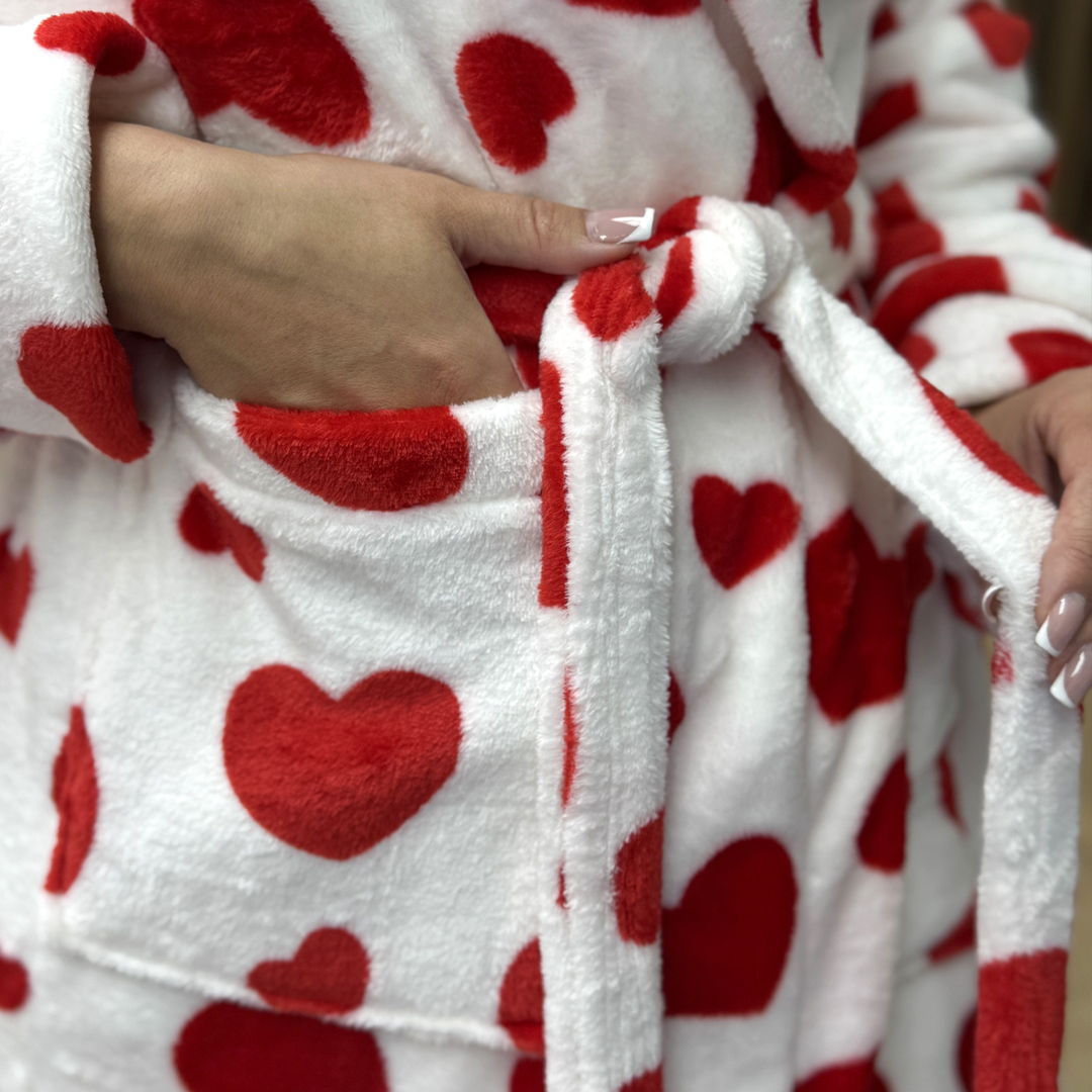 Жіночий плюш-халат - червоні серця
