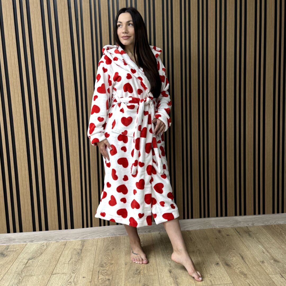 Жіночий плюш-халат – червоні серця