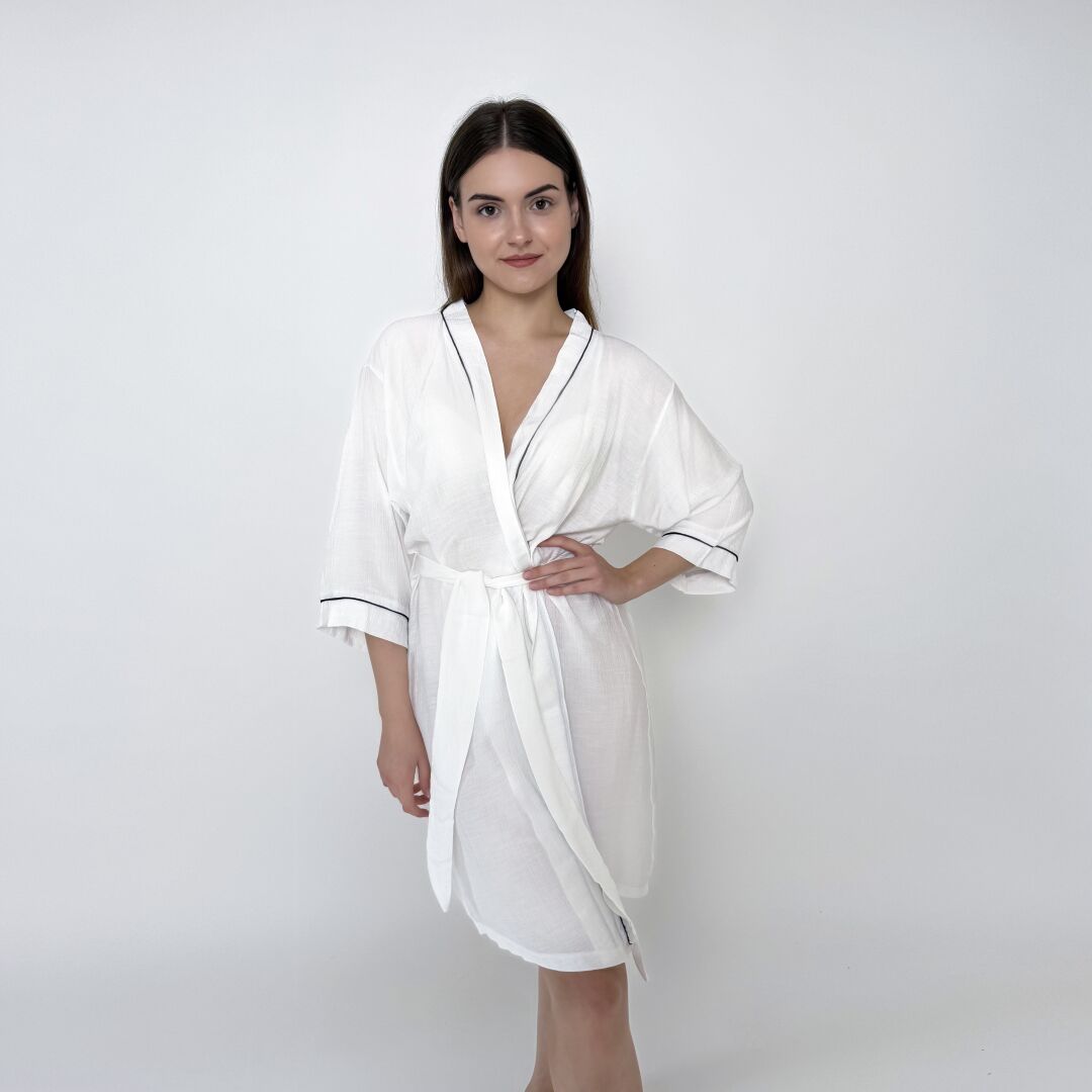 Ніжний софт-халат, що додасть вишуканості Вашим домашнім будням. Виріб дуже комфортний, легкий та приємний до тіла, прекрасно пропускає повітря та абсолютно не парить. Виготовлений з тканини софт, яка відрізняється високим рівнем щільності і водночас має м’яку поверхню. Колір не тьмяніє з часом, не линяє. Матеріал дуже зносостійкий та довговічний, легкий у користуванні. Не деформується в розмірі. Виготовлений на запах із поясом, рукав ¾ з манжетом, має білий кант на рукавних манжетах та крайньому манжеті виробу. Прання у делікатному режимі при температурі не вище 30ºC або вручну. Після прання річ не потрібно викручувати, просто прополоскати і повісити сушитися на вішалку. Сохне дуже швидко. Гладити праскою дозволено при середній температурі з виворітного боку.