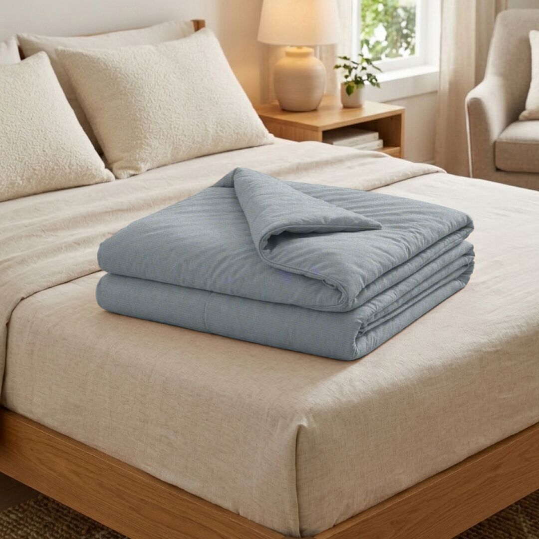 Охолоджуюча літня шовкова ковдра — це ідеальне поєднання легкості, ніжності та комфорту для теплих ночей. Вона огортає тіло м’яким, делікатним дотиком, даруючи відчуття прохолоди та свіжості навіть у найспекотніші дні.