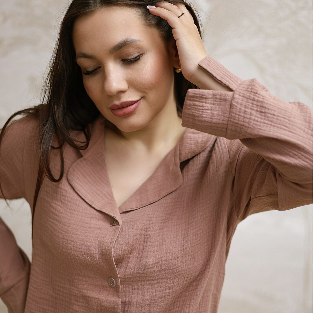 Піжамний комплект з штанами «муслін» - кавовий - photo-2