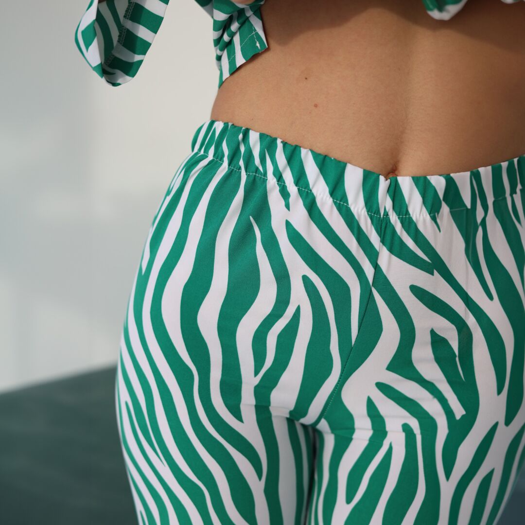 Піжама жіноча із софту з принтом зебра у комплектації штани та сорочка.