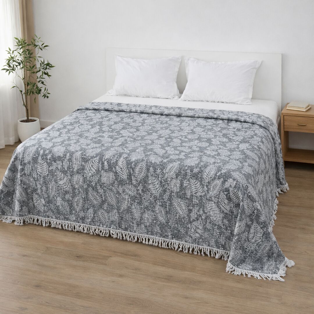 Вишуканий візерунок додає глибини та характеру, а бахрома по краях створює відчуття затишку з легким акцентом у стилі boho. Таке покривало стає не просто текстилем, а стильним елементом інтер’єру.