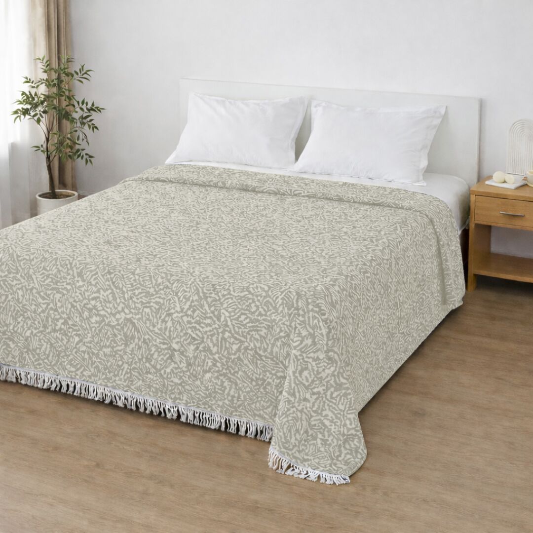 Вишуканий візерунок додає глибини та характеру, а бахрома по краях створює відчуття затишку з легким акцентом у стилі boho. Таке покривало стає не просто текстилем, а стильним елементом інтер’єру.