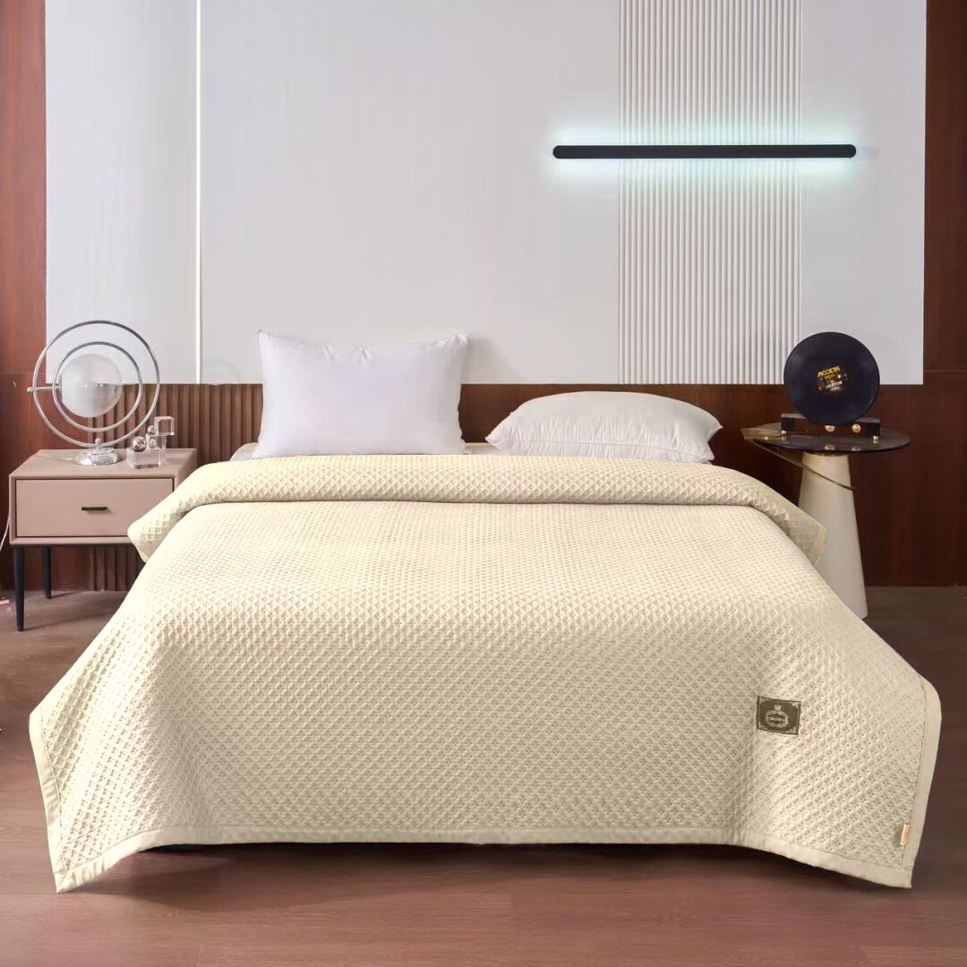 Покривало не вбирає пил і бруд, не викликає алергічних реакцій, швидко сохне після прання. Його помірна щільність дає можливість навіть використовувати його влітку як тонку ковдру.