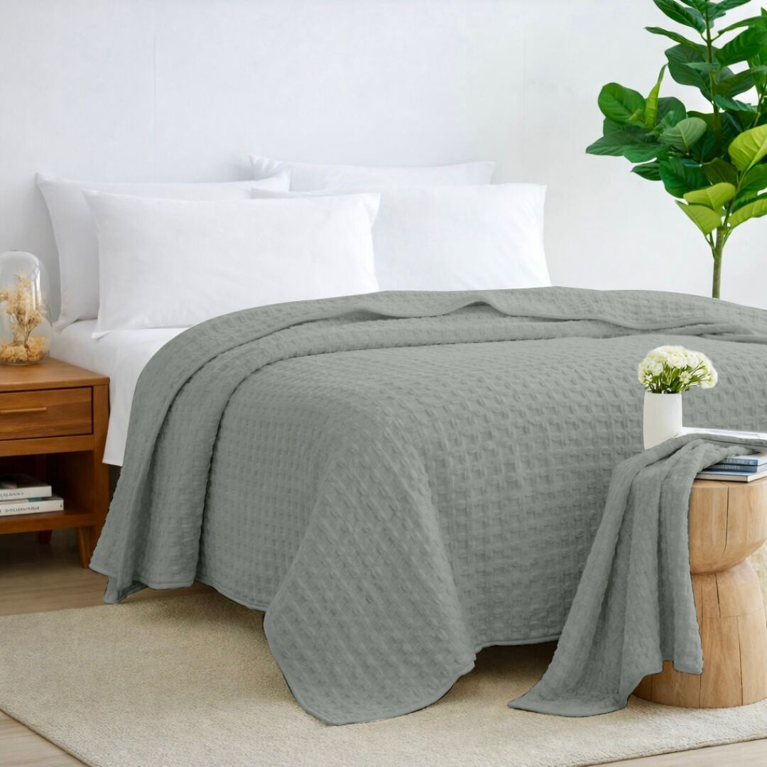 Вафельне покривало створене для тих, хто цінує натуральність і практичність. Особлива текстура тканини не лише виглядає стильно, а й забезпечує відмінну повітропроникність, дозволяючи шкірі дихати навіть у спекотні ночі.